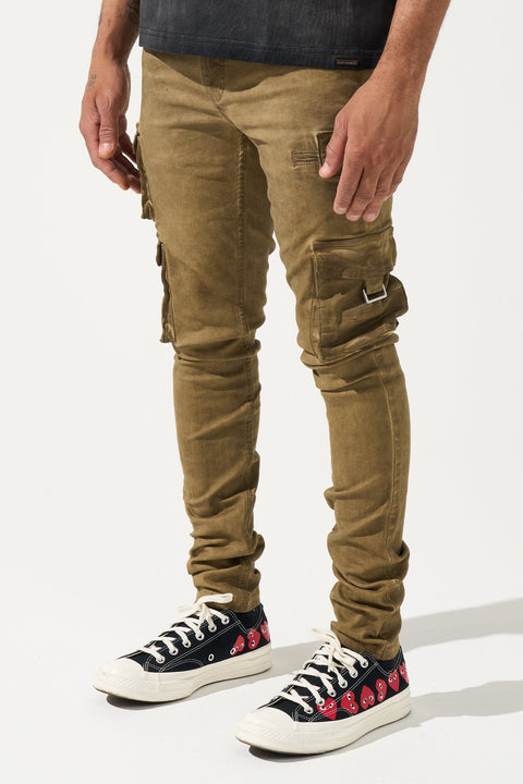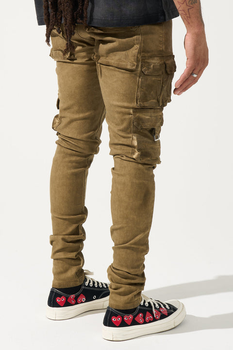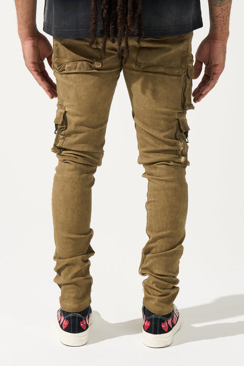 SERENEDE® TIGERS EYE Cargo Jeans - Sand beige with multi-pocket cargo utility. Signature fitted construction, tactical edge. Military-inspired aesthetic with premium character.